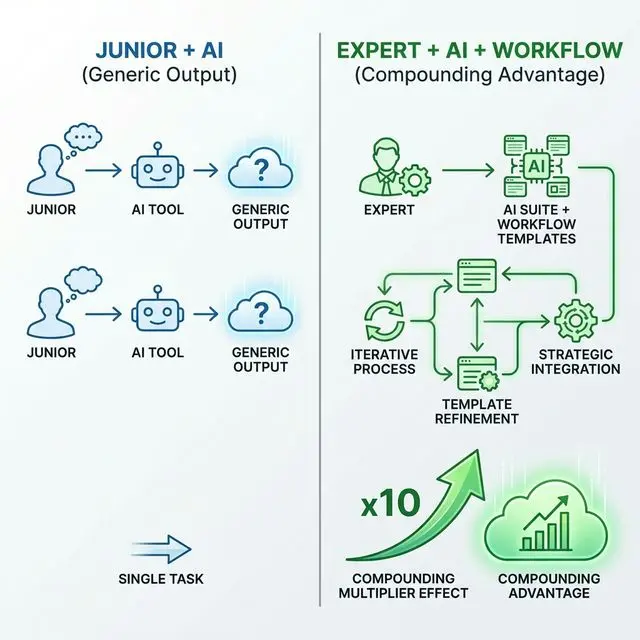 A junior person using AI without guidance generates the same generic outputs as everyone else. An expert using AI with well-structured processes produces work that compounds their existing advantage.